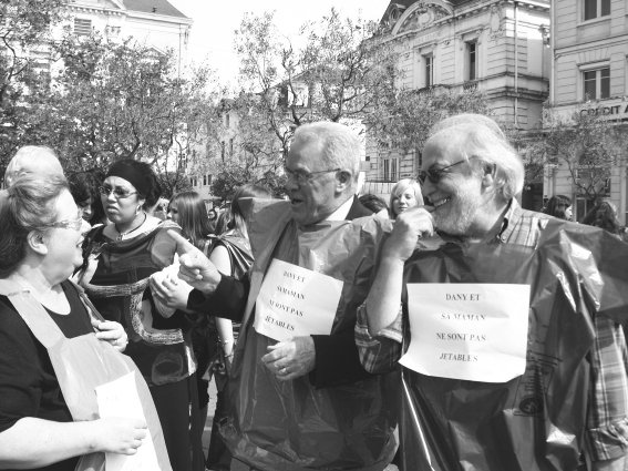 Considérant que la politique actuelle consiste à "jeter" les jeunes étrangers au mépris de toute considération humaine, les manifestants étaient revêtus d’un sac poubelle portant la mention "Dany et sa maman ne sont pas jetables"